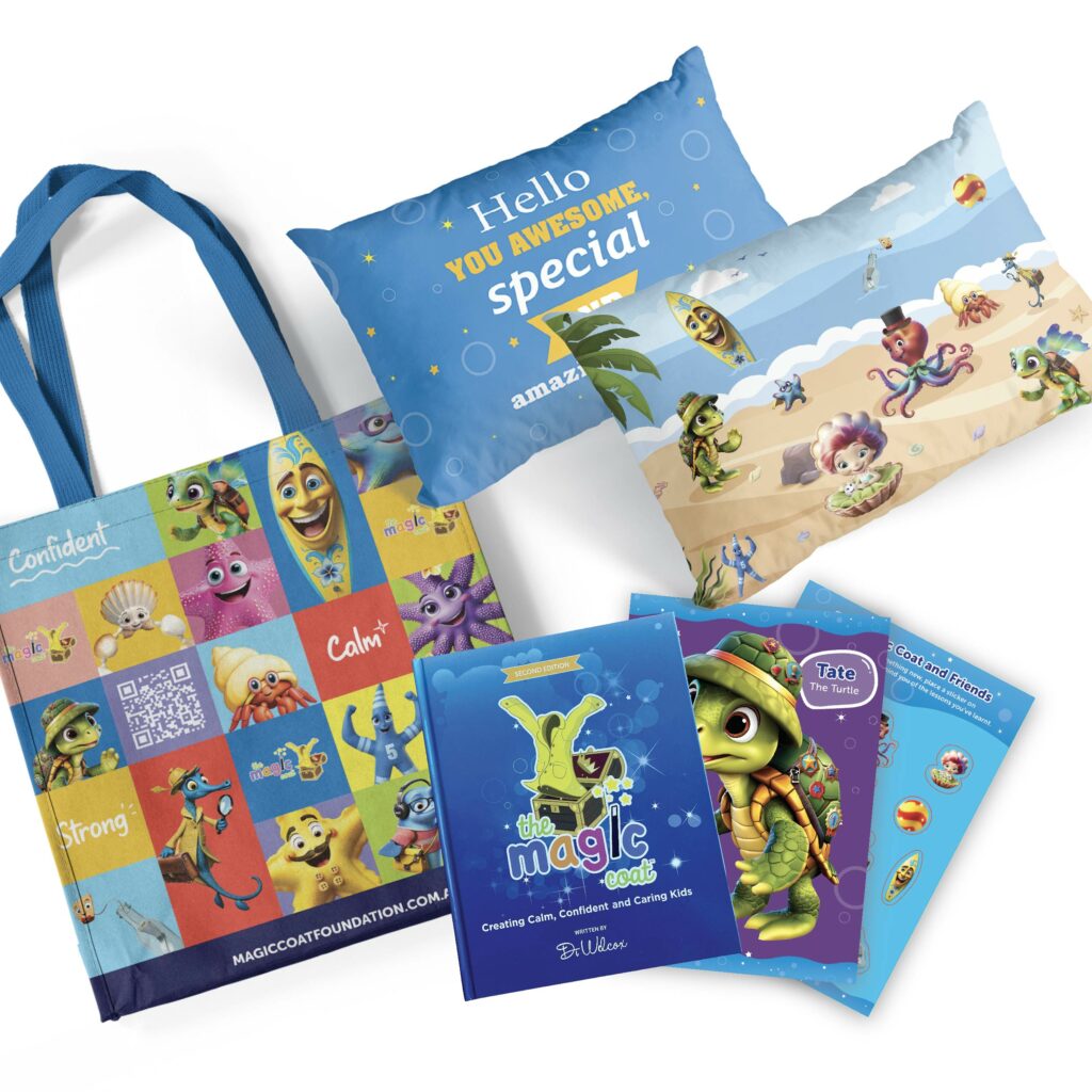 Sponsor a teacher to receive in-depth training and resources, equipping them to teach social and emotional wellbeing in the classroom. This includes in-person training with Di Wilcox, access to the online Teachers’ Treasure Box, curriculum-linked ideas, a Magic Coat for their classroom, The Magic Coat Second Edition and Indigenous books, classroom posters and stickers, and The Magic Coat Teachers’ Resource Book. Your support helps shape a brighter future for children.